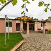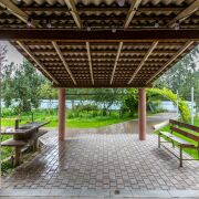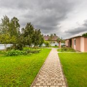 Уютный дом дополнен отдельной постройкой под баню (уже подведена вода и канализация). Мастерская и зона отдыха под одной крышей.