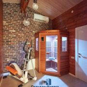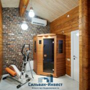 На 2-ом этаже 2 спальни, 2 функциональные гардеробные, санузел, инфракрасная сауна из сибирского кедра, уютная лаунж зона.