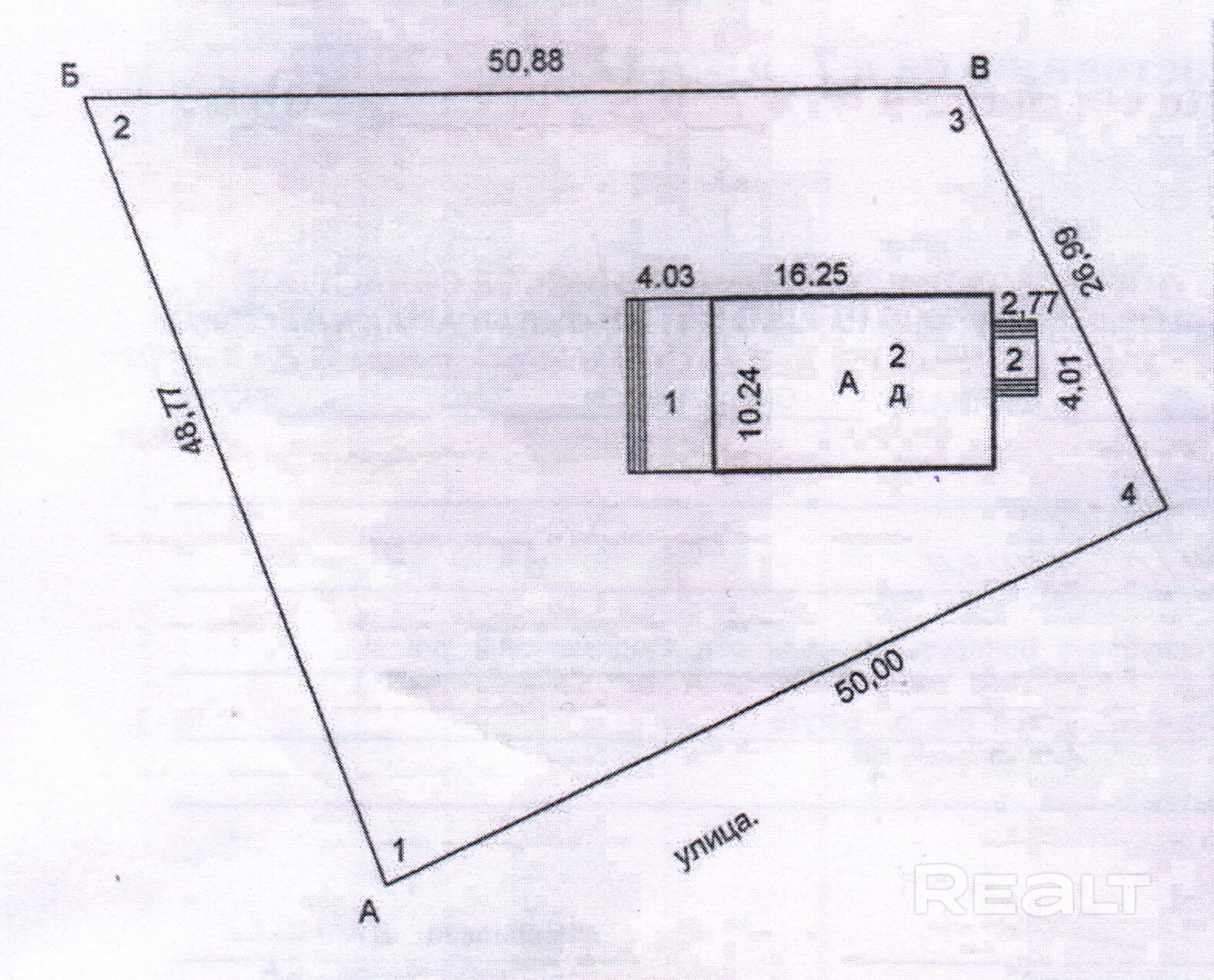 - Площадь участка