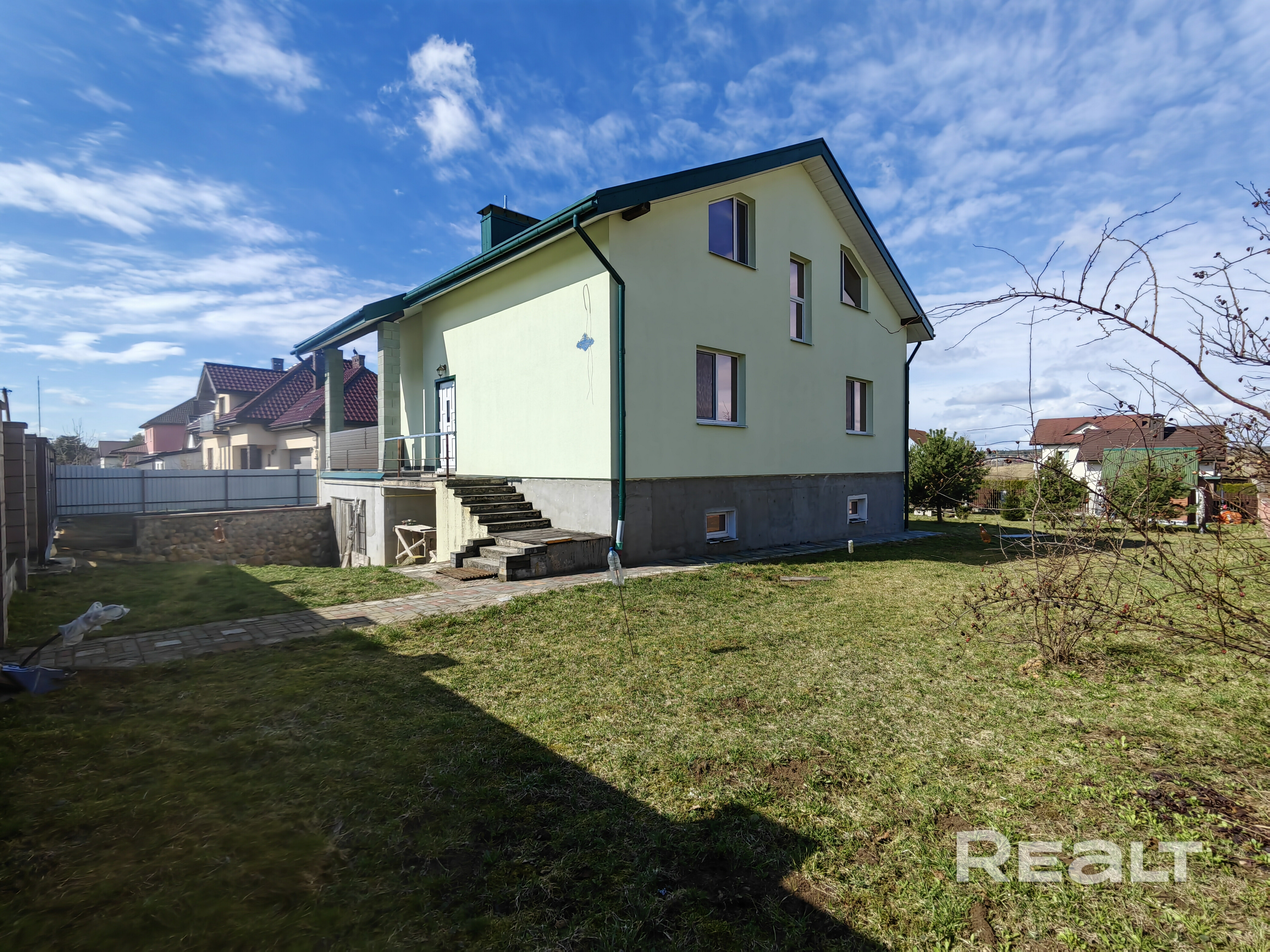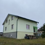 Дом состоит из цокольного этажа и двух жилых этажей. Введен в эксплуатацию в сентябре 2025 года. Все наружные работы закончены, фасад утеплен, оштукатурен и окрашен. Внутренние работы в черновой отделке. При этом основные и дорогостоящие работы по разводке водоснабжения, отопления и электрики уже выполнены. И выполнены на качественном уровне.