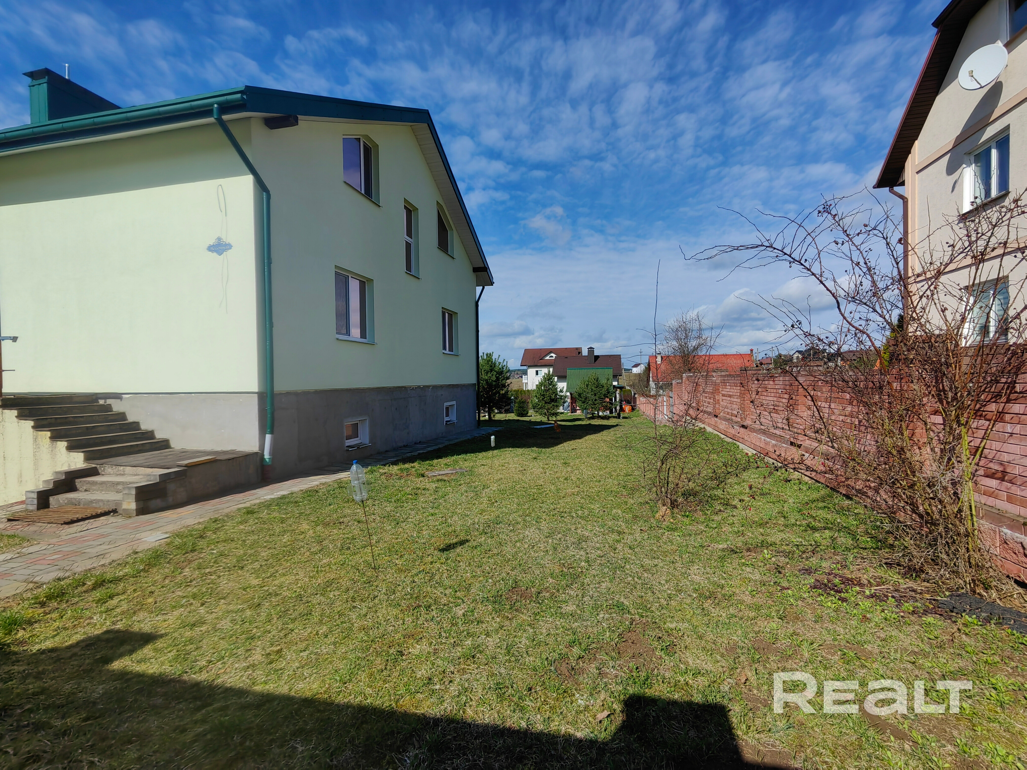 Участок находится в частной собственности. Просторный, прямоугольной формы и немного под уклоном. На данный момент на участке только декоративные деревья, поэтому будущий владелец сможет всё организовать по своему вкусу. В дальней части участка расположена хозпостройка, где можно хранить весь необходимый для садоводства/огородничества инвентарь. Для автомобильного транспорта организовано два заезда через раздвижные ворота – один непосредственно в гараж в доме и второй рядом для заезда на участок у дома. У ворот гаража сделана сливная система во избежание попадания дождевой воды в дом