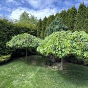 Ухоженный участок с ландшафтным дизайном, декоративными и плодовыми деревьями