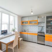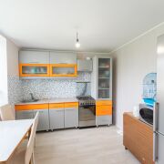 Окна – современные энергосберегающие стеклопакеты.Двери – МДФ. На полу уложен высококачественный ламинат. Обои – современные коллекции иностранных производителей. Кухня оборудована газовой плитой, микроволновой печью и холодильником. В санузле современная душевая кабина, унитаз, стиральная машина и много дополнительного пространства. Свежий и очень приятный ремонт!