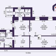 - Дом одноуровневый, 3 комнаты. Общая площадь — 57,1 м2, жилая — 42,4 м2, кухня — 6,8 м2. По дому уложен качественный линолеум.