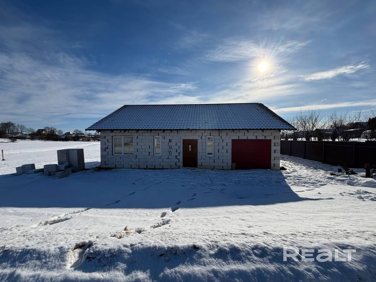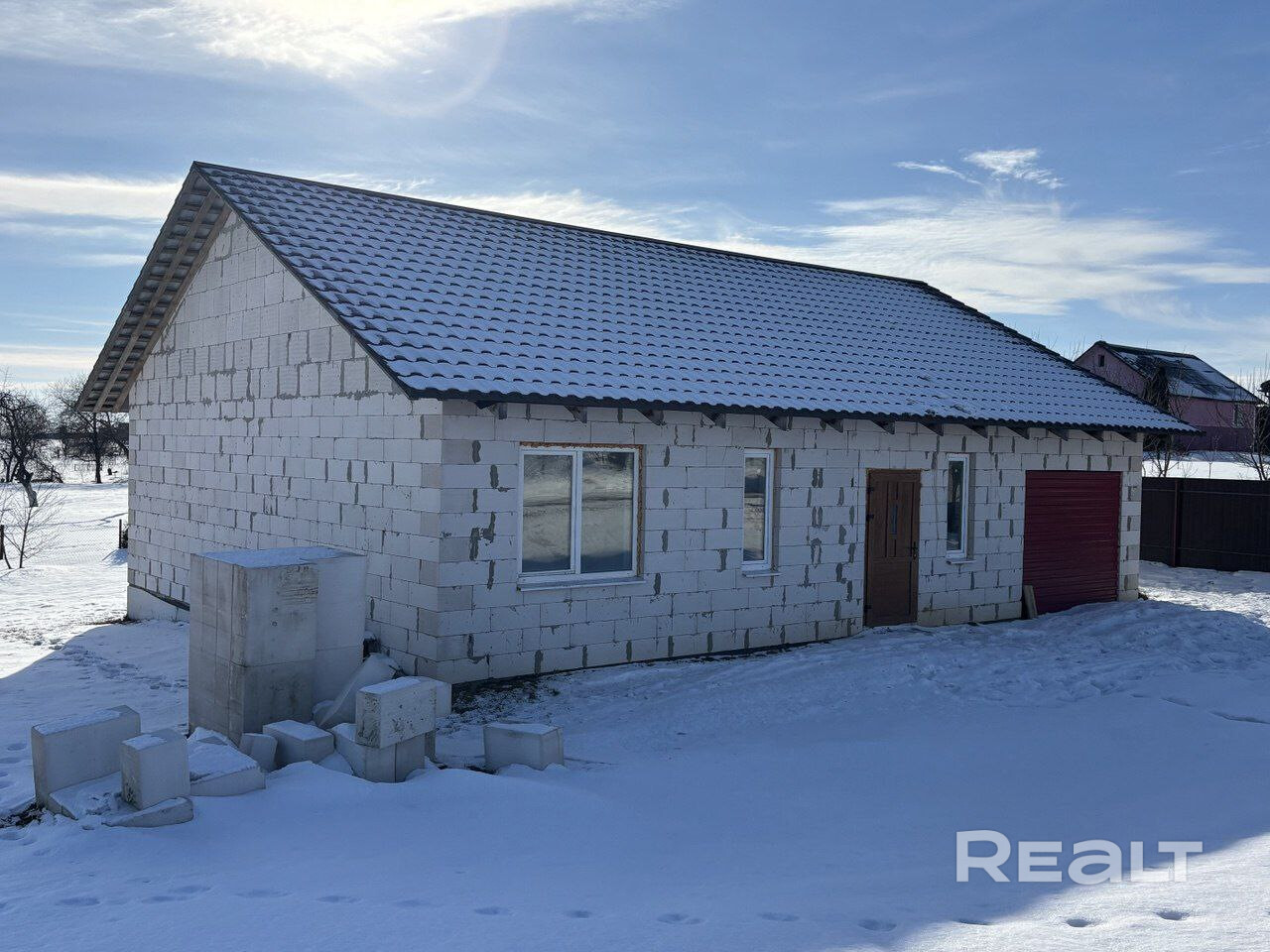 Незавершенный строительством дом недалеко от Минска. Стены - г/с блок Кровля - метал.черепица. Газ возле дома. Электричество 220/380 Вт. Подъездные пути к дому - бетон. Остановка маршрутки возле дома. Тихое, спокойное место, приличные соседи, скоростная трасса до Минска.