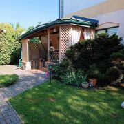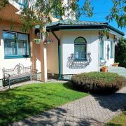 Коттедж расположен на ухоженном участке, огражденном стильным забором и оформленном настоящим шедевром ландшафтного дизайна.