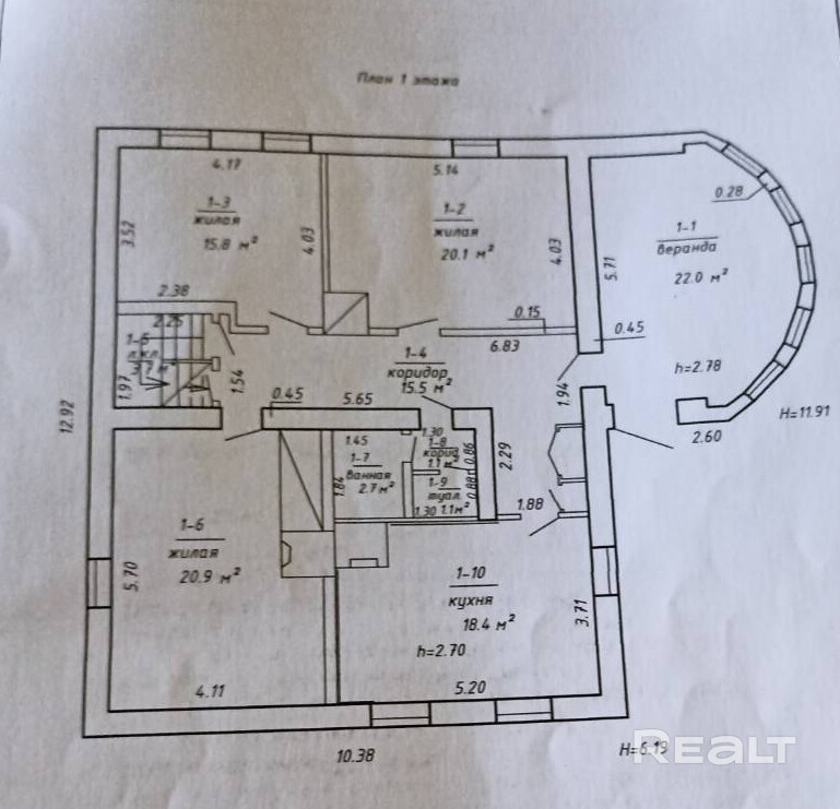 - на 1 этаже h=2,7 м., веранда h=2,78 м.