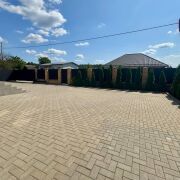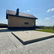 Тротуарная плитка, хвойные посадки, откатные ворота, подсветка фасада, фундамент под баню с подведёнными коммуникациями.