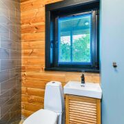-Коттедж возведен из клеёного бруса 21 см с защитной пропиткой Tikkurila, что гарантирует долговечность и отличный внешний вид.