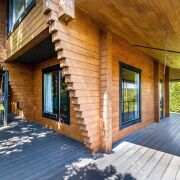 -Дом радует стильной отделкой из натурального дерева и продуманной архитектурой с большой крытой террасой, площадью 70 м2, которая станет идеальным местом для летних вечеров и приёма гостей.