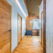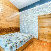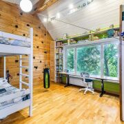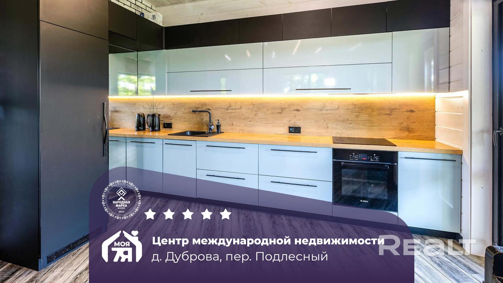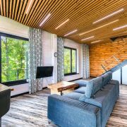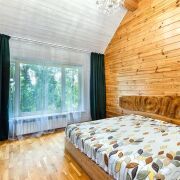 -В отделке использовано натуральное дерево и декоративный кирпич, которые создают атмосферу уюта. Просторная гостиная с панорамными окнами наполняется светом и открывает вид на зелёные пейзажи. Элегантная кухня со встроенной техникой и продуманной подсветкой, а также просторная ванная с видом на природу и качественной сантехникой подчеркивает высокий уровень комфорта этого дома.