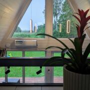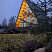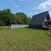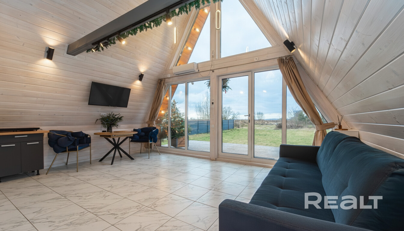 Дом в стиле A-frame, 54.5 м + терраса 20 м. 44 км от МКАД по М1. Две спальни, кухня-гостиная, котельная. Утепление 200 мм, теплые полы, кровля клик-фальц. Дизайнерский ремонт. Система «Умный дом» управляет светом, отоплением, водой. Своя скважина, генератор - полная автономия. Видеонаблюдение. Участок 15 соток с большими деревьями + 20 соток под ЛПХ с прудом и рыбой. Хозблок 26 м², навес для авто, откатные ворота. Подходит для жизни или арендного бизнеса. Все готово, можно заезжать. Собственник.