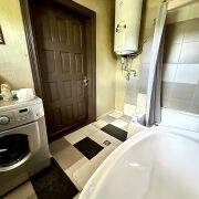 В доме четыре комнаты (гостиная с кухней, три спальни). Санузел 4,8 кв. м оборудован душевой, умывальником, туалетом, бойлером для подогрева воды, стиральной машиной.