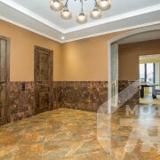 -Вторая гостиная - это полноценная каминная зона с массивным камином из природного камня, износостойким керамогранитом и большими окнами. Это пространство создано для отдыха, спокойных вечеров и уюта, который возможен только в доме такого уровня.