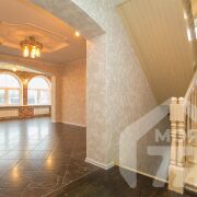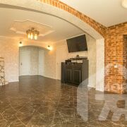 -Пространство дома оформлено в премиальной, сложной стилистике: сочетание фактурного кирпича, декоративной штукатурки и мягкого тёплого света создаёт атмосферу камерной роскоши. Акцентная кирпичная стена и камин из природного камня - не декоративный элемент, а функциональный источник тепла и зона, вокруг которой хочется собираться вместе со всей семьей. Напольное покрытие выполнено из крупноформатной плитки с натуральной текстурой камня - долговечный и статусный материал, который делает интерьер визуально цельным.