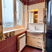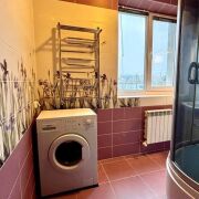 -Санузел продуман до мелочей: плитка в нежных лавандовых и белых тонах с декоративными вставками привнесет атмосферу свежести, а хорошая сантехника придает современный вид.