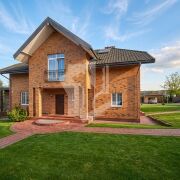Основной энергоэффективный кирпичный дом из немецкого клинкера построен по индивидуальному архитектурному дизайн-проекту .