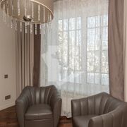 Дизайнерское решение, высококачественная отделка всех помещений с использованием только импортных материалов, итальянская дизайнерская мебель и освещение, бытовая техника Miele, плитка и сантехника премиум класса ведущих итальянских и немецких производителей.
