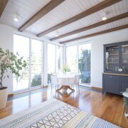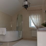 Три спальни, 3 санузла, немецкие окна с пяти камерными стеклопакетами, окна в пол, французский камин, просторная кухня-столовая с обеденной зоной и выходом в зимний сад и на летнюю террасу прямо из кухонной зоны первого этажа, где обустроены зоны для отдыха и релаксации.
