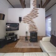 В гостевом доме расположены сауна с финской печью на дровах, моечное отделение, две просторные комнаты с камином.