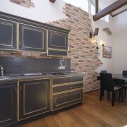 Итальянская кухня с историей от известного итальянского дизайнера полностью оборудована всем необходимым, включая небольшой винный шкаф.