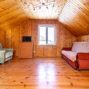 Вода центральная, канализация местная. Окна ПВХ. На первом этаже расположено: комната отдыха, гостиная с кухней, парная, с/у, душевая. На втором – жилая комната 31 м2.