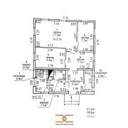 В доме общей площадью 58,8 м. кв. четыре комнаты.