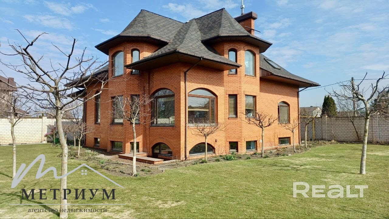 Экологичный, светлый, теплый и обустроенный дом площадью 385.4 м2 из красного облицовочного кирпича, изогнутой крышей с окнами - покрытие финский “KATEPAL” – надежность и эстетика на десятилетия. Досконально продуманный проект и зонирование пространства.