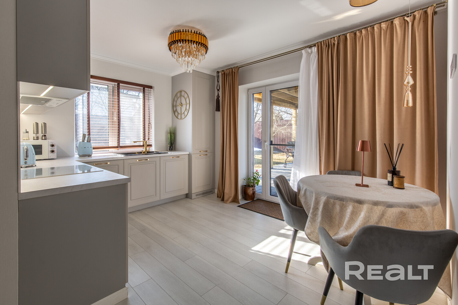 Светлые, тёплые оттенки в отделке визуально расширяют пространство