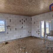 -Капитальное строение 124 м2 (8х15,5) из газосиликатных блоков, готовность 50% — это означает, что коробка дома законсервирована в хорошем состоянии..
