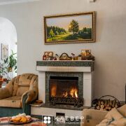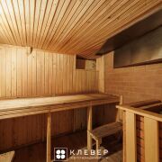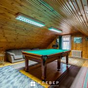 К дому пристроен гараж площадью 57 кв. м на две машины со смотровой ямой. Высота ворот 2,8 м. Также в доме есть сауна, бассейн, мастерская, игровые комнаты с бильярдом и настольным теннисом, терраса