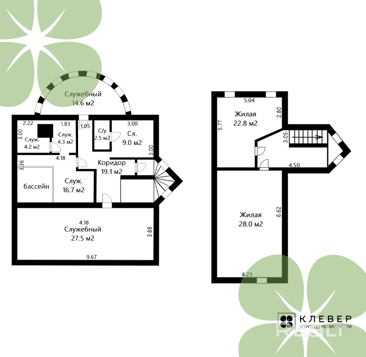 Площадь – 398,4 кв. м, жилая – 283,1 кв. м.