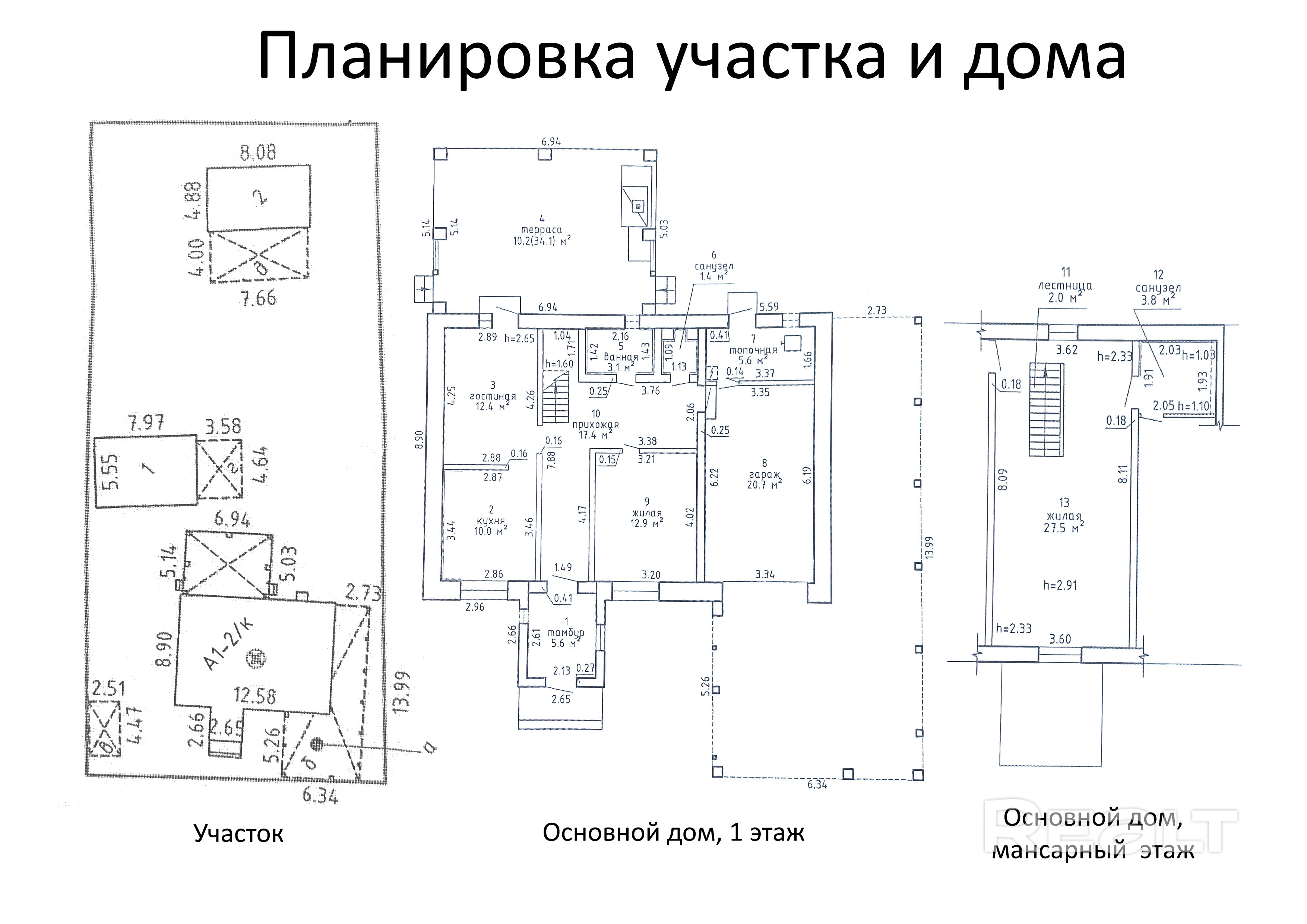 Основной дом (кирпич, 96.1 м2 / жилая 52.8 м2):