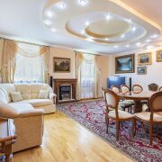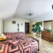 - Проект выполнен по индивидуальному дизайну с использованием натуральных материалов и гармоничным стилем интерьера, создающим уют. Дом полностью укомплектован бытовой техникой, что позволяет сразу заехать и жить. Планировка продумана для комфортного проживания двух семей. В доме есть два независимых жилых пространства, две кухни, четыре санузла. Для отдыха предусмотрена баня на дровах с комнатой отдыха и террасой. На участке также расположен гостевой дом с гаражом площадью около 120 кв.м.