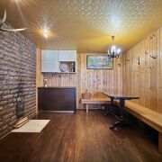 · Первый этаж полностью готов к проживанию, выполнен качественный ремонт. Главная гордость — настоящий камин на дровах.
