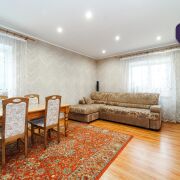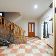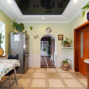 - Внутреннее пространство дома распределено по нескольким уровням. На первом находятся просторная гостиная, кухня и столовая зона. Панорамные окна пропускают много естественного света и дают возможность выйти прямо на участок, где можно наслаждаться красотой природы. На втором и последующих уровнях разместились спальни, детские и гостевые комнаты - идеальный вариант для большой семьи и приема друзей. Самый верхний этаж недавно обновили: здесь установили тёплые полы и сделали большое панорамное окно, чтобы создать уютное пространство для мастер-спальни с гардеробной или кабинета с видом на сад. Для удобства всех членов семьи в доме предусмотрено два санузла, расположенных на разных этажах.