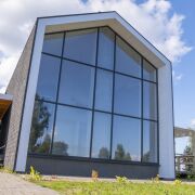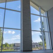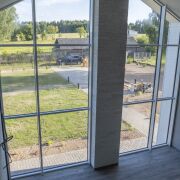 - высокие потолки, обзорные окна;