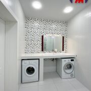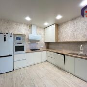 -Кухня укомплектована встроенной техникой: духовой шкаф, варочная панель, посудомойка, вытяжка, микроволновая печь.