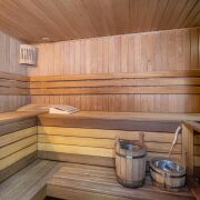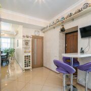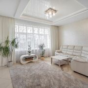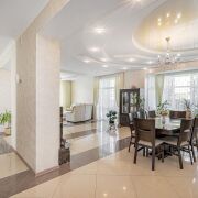 - Стены со светлой, изящной венецианской штукатуркой, высокие потолки с разнообразными видами освещения, создают уютное пространство для отдыха.