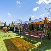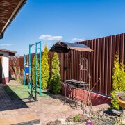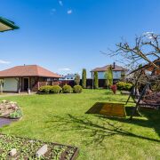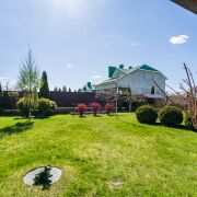 Оформление участка сочетает в себе красоту и рациональность: отличный газон, много декоративных кустов и цветов,- но есть и молодой сад с изящно оформленным огородом!