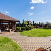 На территории выполнено качественное мощение дорожек, отличный ландшафтный дизайн.
