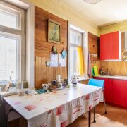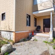 Стены: 1 этаж – красный кирпич (ширина 40 см); 2, 3 этаж – брус пиленный обложен кирпичом. Снаружи стены утеплены каменной ватой 10 см + сайдинг. Пол в отличном состоянии – доска 40 мм, в бане, душе и пристройке плитка. Окна и двери – ПВХ, деревянные.