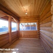 Сруб выполнен из леса хвойных пород зимней рубки, толщина бревна диаметром 28-32см. Установлен сруб на свайно-ростверковый фундамент. Полы на веранде и в моечной из массива дуба, в парной и комнате отдыха из хвойных пород. Стены покрыты экологически чистой импортной пропиткой. Отделка потолков, стен и полков в парной выполнена из досок ольхи экстра-класса. Материал кровли – цементно-песчаная черепица производства ОАО «Забудова».