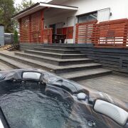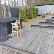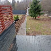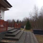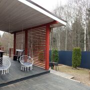 Территория от соседей огорожена высоким забором 2 м, что создаёт ощущение уединения и безопасности.