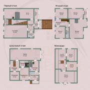 Просторный первый и второй этаж, мансада и цокольный этаж.