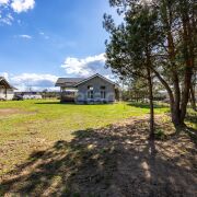 Благоустройство территории представлено ухоженным газоном, многолетними соснами.