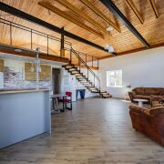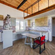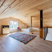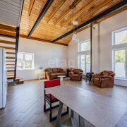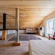 Кровля - металлочерепица + доборные металлические элементы, утепление 20 см. Использованы дорогие и качественные материалы. Брус для стропильной системы обработан огне-биозащитой. По периметру всего дома выполнен армирующий пояс с мауэрлатом и дополнительными креплениями. Под металлочерепицей - гидро-диффузионная мембрана, утепление 20 см Parok.