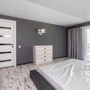 2-й этаж: 3 спальных комнаты, из двух спальных есть выход на большой открытый балкон 7.3 х 3 м, с которого открывается прекрасный вид на облагороженный участок и близлежащий лес. Здесь же находится просторная гардеробная.