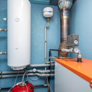 Из жилой зоны, на террасу, вынесена современная топочная, оборудованная твёрдотопливным котлом, бойлером косвенного нагрева на 140л. и гидроаккумулятор на 750л.