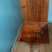 На втором мансардном этаже одна жилая комната. Стены и потолок отделаны ДВП. Окно ПВХ.
